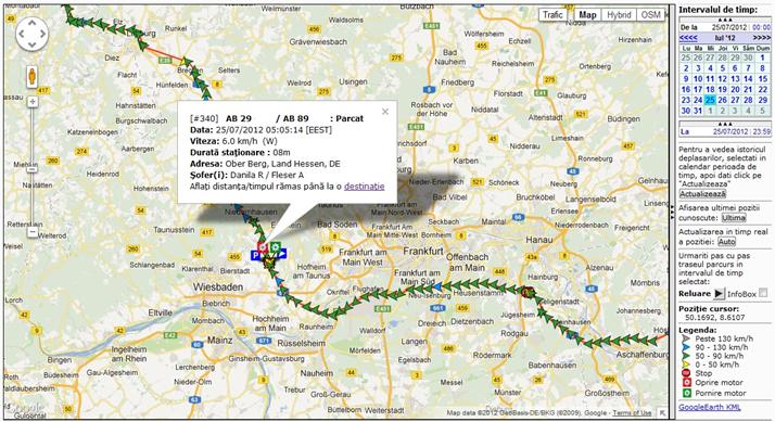 personalizate pe harti, inclusiv recunoasterea adresei pe unde a circulat flota
